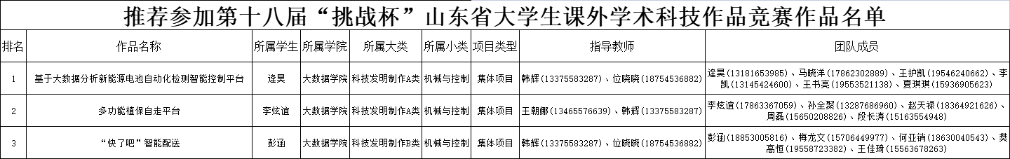第十八届“挑战杯”山东省大学生课外学术科技作品竞赛推荐参赛省赛名单公示