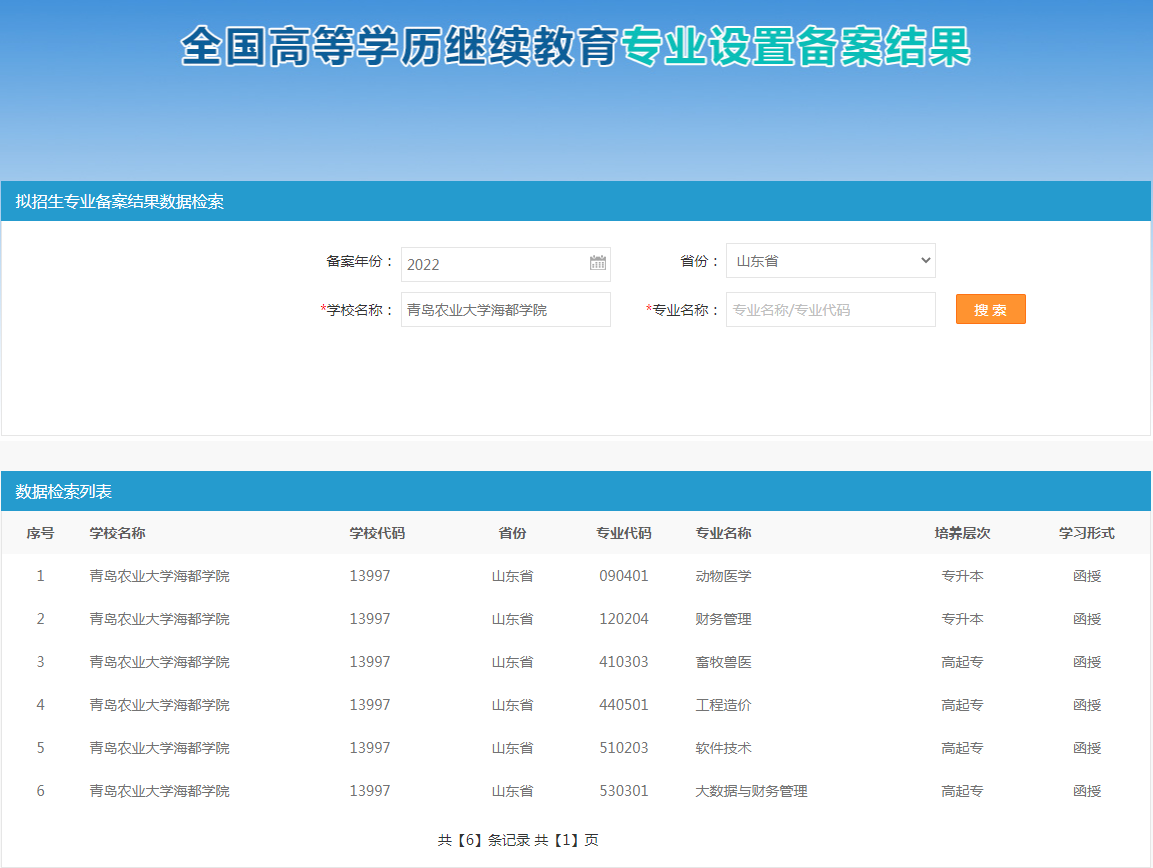 近日,《教育部关于公布2022年高等学历继续教育拟招生专业备案结果的通知》(教职成函〔2022〕5号),青岛农业大学海都学院申报的动物医学(专升本)函授专业、财务管理(专升本)函授专业成功获批。至此,我校高等学历继续教育专业数量达到6个,涵盖工学、理学、管理学、农学等学科门类。